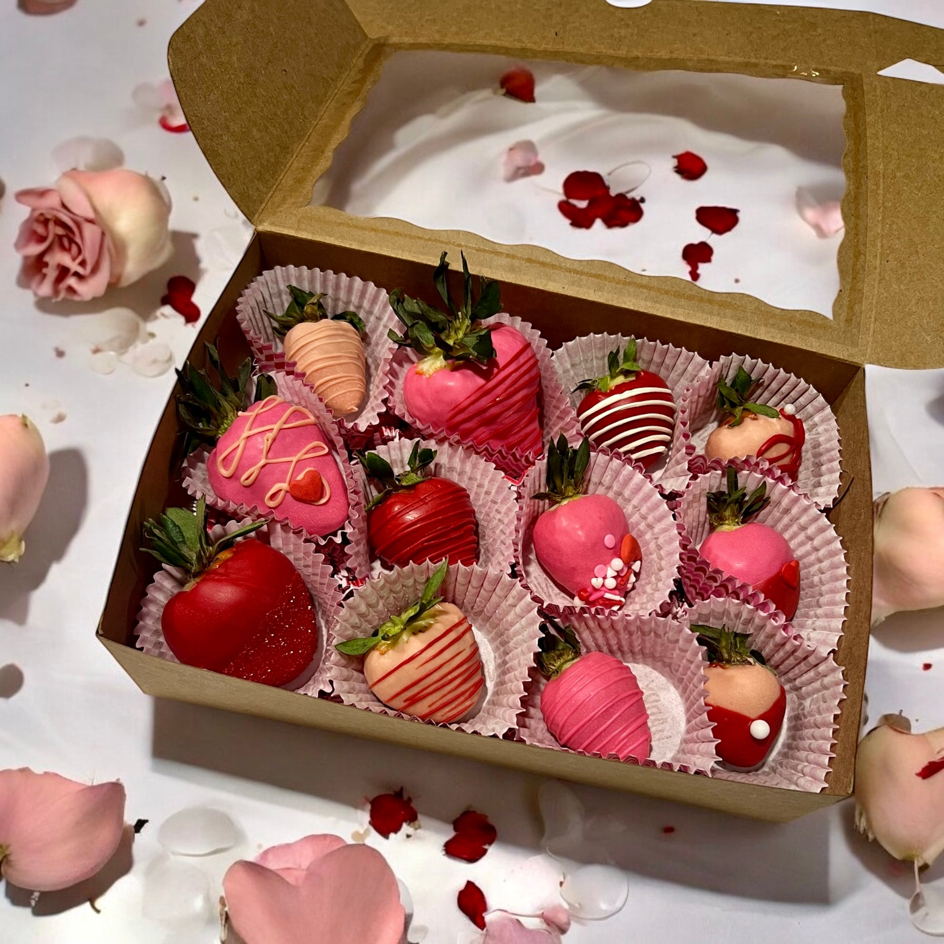 A Dozen Valentine's Themed Chocolate Covered Strawberries